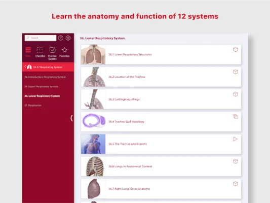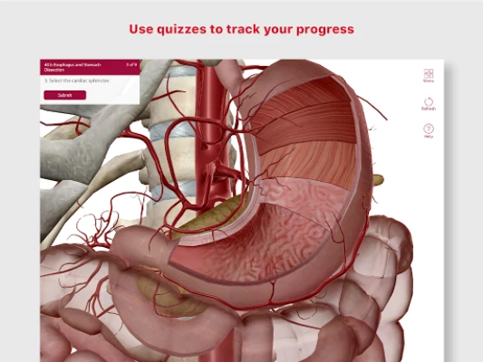 This app includes 12 units with 50 chapters/modules that use over 500 preset views of 3D models, more than 150 illustrations and animations, and hundreds of quiz questions.