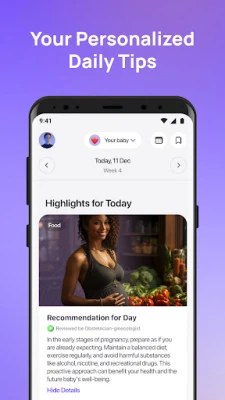 – Personalized Daily Tips – Get practical advice tailored to your pregnancy stage or your baby’s current age.