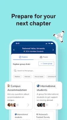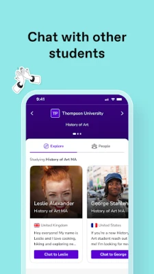 Download the app and sign in to chat to current students or other prospective students, depending on what stage you're at in your decision making journey. If you have been invited to a community to chat to other prospective students, follow the steps in your invite to create an account.