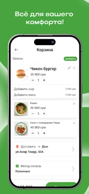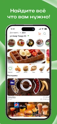Наше приложение позволяет легко находить и заказывать еду и свежие продукты в вашем городе. Все ваши любимые рестораны в одном приложении! Просто выберите категорию, кухню, ресторан или конкретный товар!